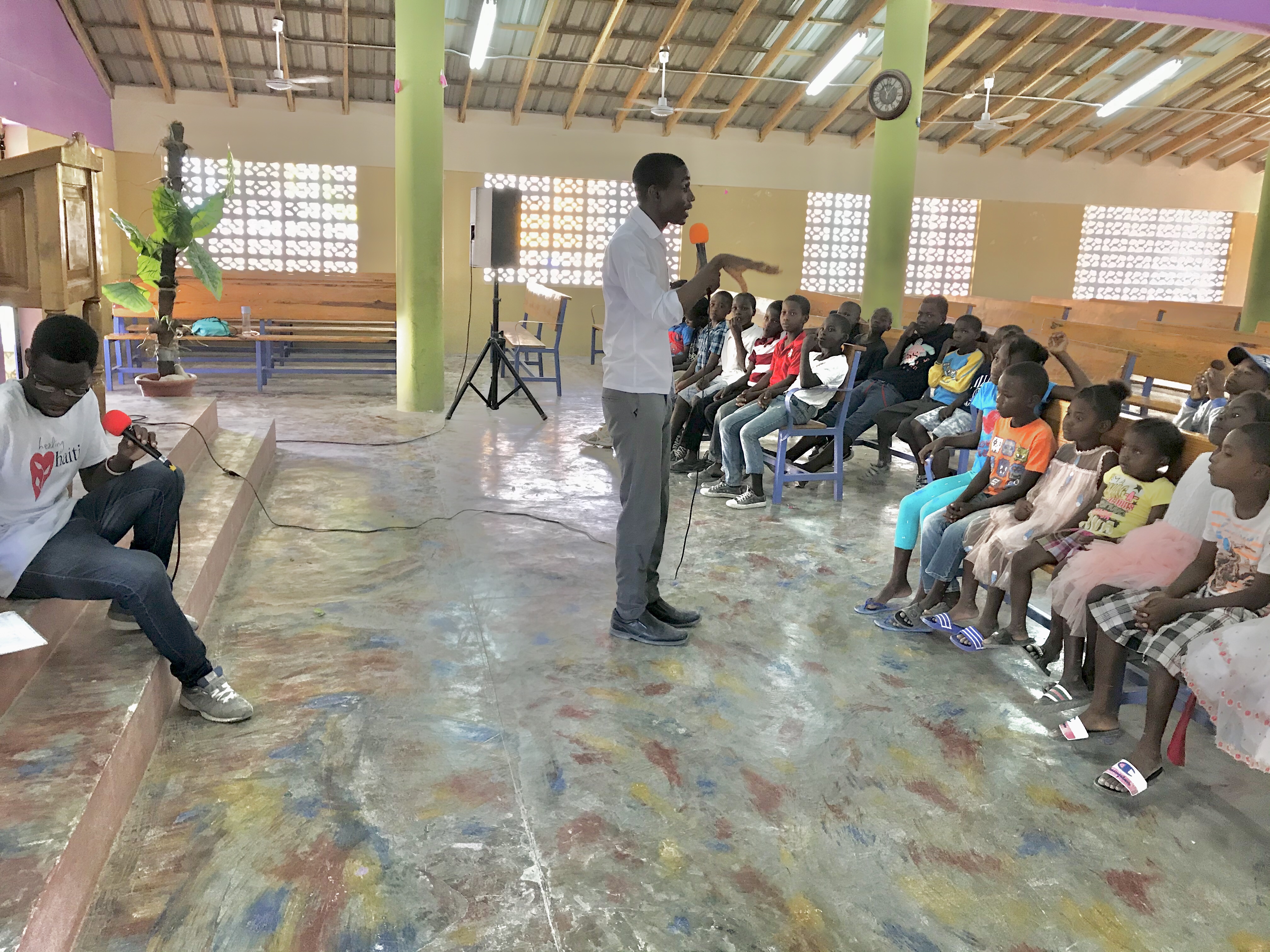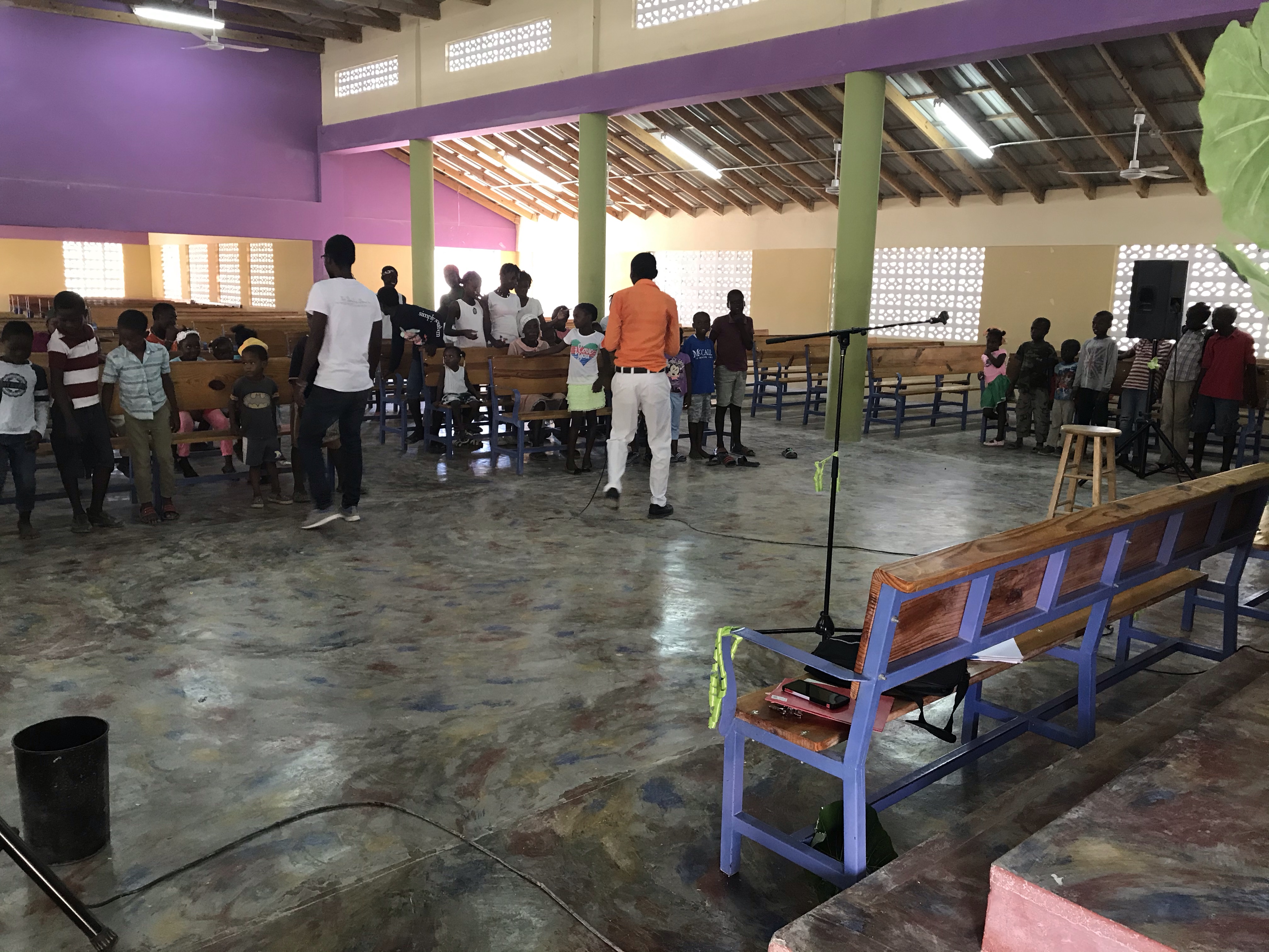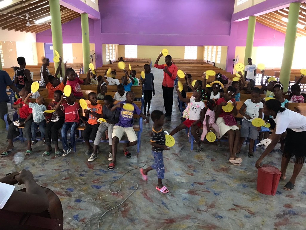 So we switched gears real quick and, between the three teachers, they settled on a simple Kreyol translation, “Lajwa senyè a se fós mwen”. And then we sang! On loop. Probably at least 30 times, with kids jumping up for a chance to sing it solo into the microphone and competitions to see if the older or younger kids could sing it louder.