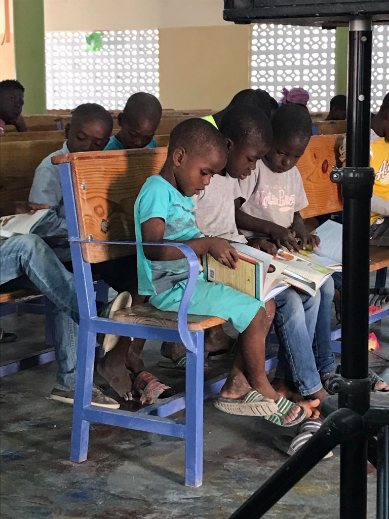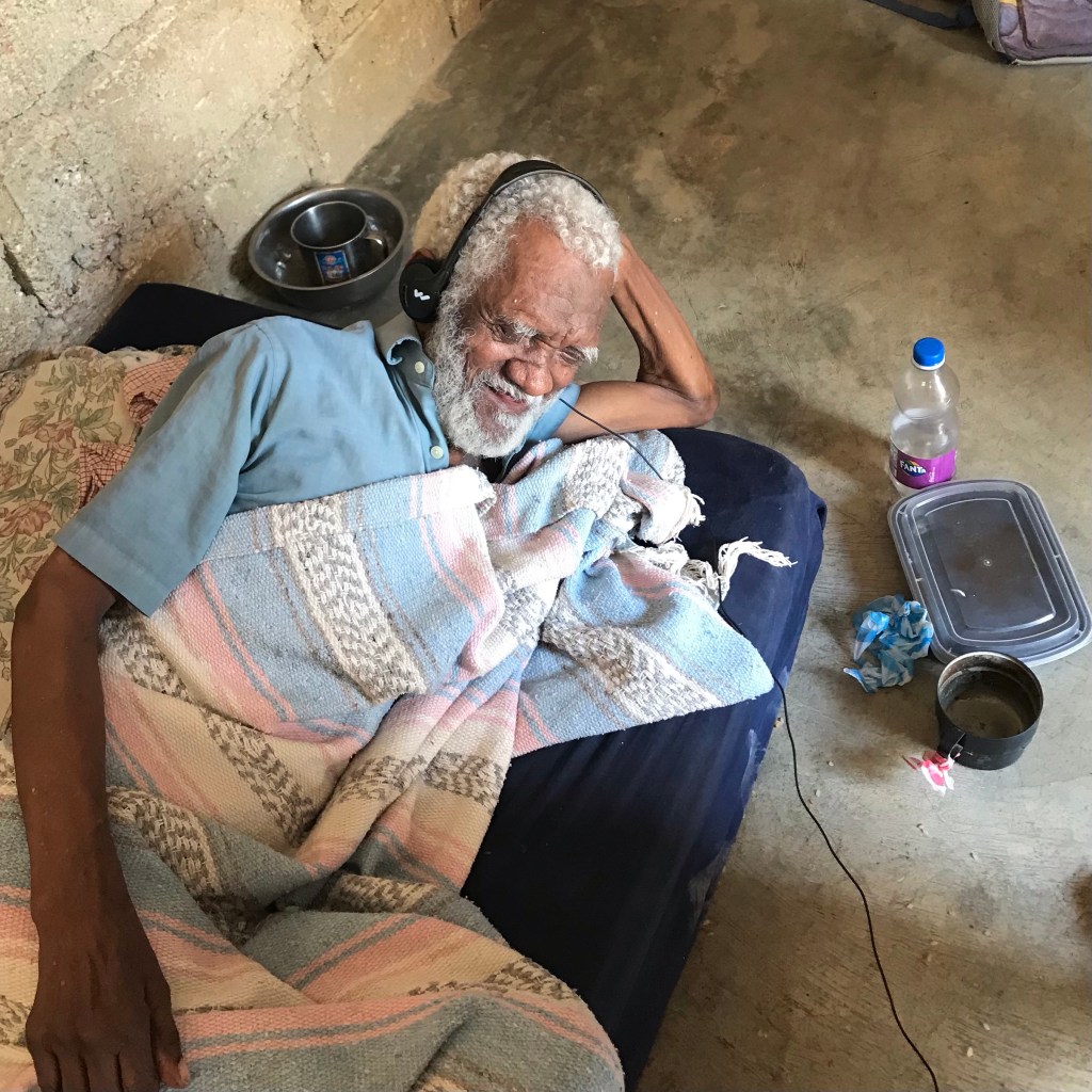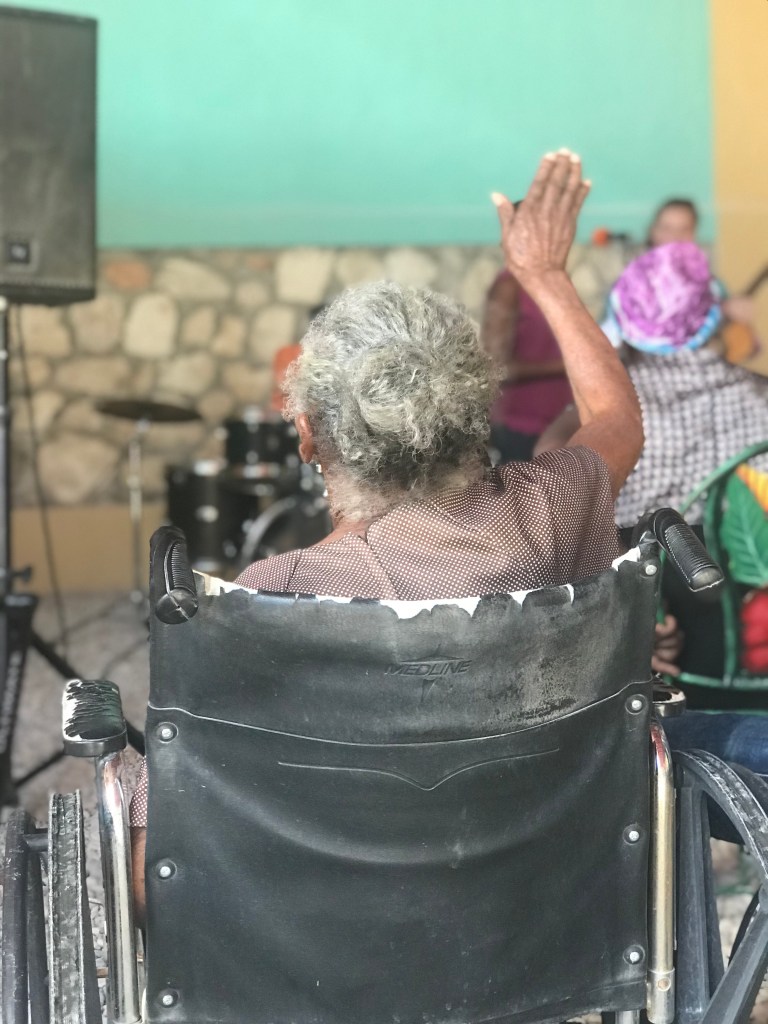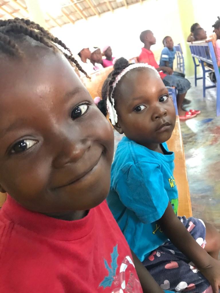 One of the sweet elders in Titanyen. Dr Fabian joined our elder team for an afternoon!Edmond enjoying conversation with the help of a “pocket talker”.A lot of love and a lot of Jesus in these hearts. Not my daily life. 😆Kids Life learning some geography.A couple girls keeping me company in church. Fleri Farms made a surprise produce delivery for the elders in Titanyen.Some days my commute is interesting…My pastor and his family came to my birthday party.