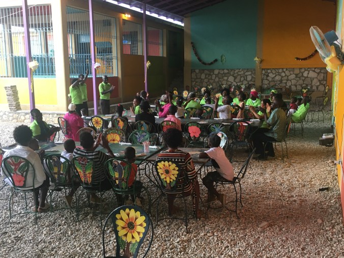 People who have suffered greatly in their lives, throwing their hands up in worship. Elders who need assistance to walk insisting on joining the conga line anyway. Church members who live a daily food crisis and know the threat of gang violence quite personally, not only eating with gratitude, but slipping leftovers off their plates into their napkins to take home and share. Those members also inviting in children who are peeking through the open restaurant door to finish their sodas and saving some of the chicken on their own plates for them.